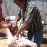 Wir fuhren dann auch zum zweitältesten Leuchtturm Chiles – Faro Corona – zum Teil per Autostopp und waren die ersten Österreicher, die sich im Gästebuch des neuen Schauraums verewigten, schauten noch bei einer lokalen „Costumbrista“ (Volksfest) vorbei, wo nicht nur Schweine und Schafe geschlachtet, sondern auch chilenische Volkstänze vorgeführt wurden, und last but not least statteten wir dem famosen Frisör „Darvin“ in Ancud einen Besuch ab – denn Charly war mit seinem Bart kaum mehr von einem der örtlichen Seehunden zu unterscheiden und ich tat mir bereits schwer meine Stirnfransen aus den Augenwinkeln zu bekommen.