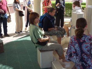 Ein Highlight zum Abschluss war der Besuch der „Jumeirah Moschee„. Im Rahmen der Führung dürfen Nicht Muslime und Frauen die Moschee betreten, gibts in der muslimischen Welt gar nicht so oft. Die Führung war sehr gut gemacht, viel gibts in einer Moschee ja nicht zu sehen, aber die Erklärungen rund herum, bzgl. Kleidung, Waschen etc. waren umfassend, auch wenn vielleicht die eine oder andere kritischere Frage (Burka, Niqab) doch unbeantwortet blieb.