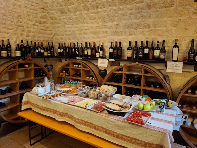 unseres Vermieters – zu erreichen über eine halsbrecherische, steinerne und enge Treppe nach unten, zwischen Rot- und Weißweinen und Einmachgläsern aller Art machen wir noch eine Runde im Sonnenschein in „Neu-Alberobello“ und dann geht es weiter.