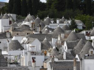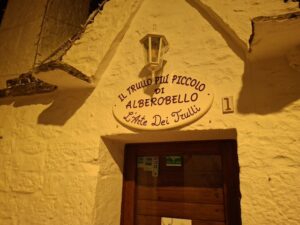 Trullis – „Trulli Town“ – Alberobello! Schon auf unserer Fahrt kündigen sich die ersten Trullis an und in Alberobello haben wir für eine Nacht unser ganz persönliches Trullo gebucht (Trulli e Puglia Resort) – gut geheizt, was in diesem Falle gut ist, denn es ist unser einziger Aufenthalt, wo sich auch Regen angekündigt hat. Unser „Landhaus“ (inmitten von „Trulli-Town“ ist liebevoll eingerichtet und nach einer ersten Runde in Italiens „Hobbit-Land“ 🙂 mit kleinen Läden, Vino-Stopp, Chat mit einem Pärchen aus Napoli und Kauf von lokalem Olivenöl beschließen wir unsere Küche im Trullo zu nutzen und unsere Pasta verfeinert mit Trüffelsalami in der wohligen Atmosphäre unseres warmen Trullos zu genießen!