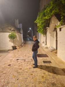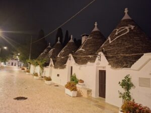 Und auch in Alberobello, nachdem alle Tagestouristen weg sind, machen wir einen ganz speziellen Nachtspaziergang: Etwas Regen, warme Beleuchtung, enge Steinstraßen und menschenleer – einfach grandios! Was für ein Unterschied zum üblichen Touristen-Alltag!