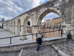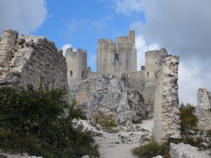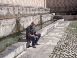 Wir nehmen Abschied von Emma und ihren „Bambini“ und queren die Marche, fahren entlang der Küste vorbei an Ancona immer Richtung Süden mit einem Abstecher nach Jesi (berühmt für ihren Weißwein Verdicchio) bis wir unser nächstes Ziel in den Abruzzen erreichen – Aquila. Dafür geht es landeinwärts Richtung „Gran Sasso“ mit spektakulärem Tunnel (ca 10km lang) durch das Bergmassiv. Aquila erlangte 2016 traurige Berühmtheit und wurde von einem Erdbeben schwer in Mitleidenschaft getroffen. Auch heute noch sind viele Gebäude von diesem Ereignis gekennzeichnet und das Stadtbild ist geprägt von Baukränen – die Wiederaufbauarbeiten sind nur schleppend in Schwung gekommen. Wie durch ein Wunder hat eines der Sehenswürdigkeiten die Verwüstung überlebt – La