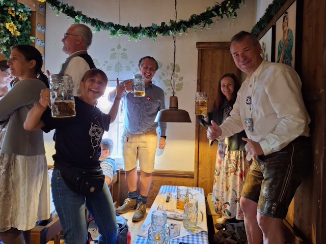 Weil unser Family & Friends Stopp in Wien vor unserem Ägyptenausflug so gut geklappt hat führt uns unsere erste Etappe mal nach Salzburg. Wir freuen uns sehr nach so langer Zeit auch unsere Verwandten im Salzburgischen wiederzusehen – mit Ausflug nach Bad Ischl zur Katrin Seilbahn und für einen Stollen zum Zauner – und für ein Treffen mit unseren langjährigen Freunden Jogo, Roli und Bettina. Unsere Weiterfahrt war an sich schon eingeplant und dann kommt es mal wieder anders als man glaubt. Wir werden von Roli mit einer Einladung zum Oktoberfest in München überrascht und das kann man sich nicht entgehen lassen!!! Für mich ist es ja das erste Mal und ein Tag auf der „Wiesn“ in dieser Freundeskonstellation ist unschlagbar. Mit Roli, Bettina und Markus geht es im Zug nach München und um 12 Uhr schlagen wir im Bierzelt auf – „Hacker-Pschorr“ ist unser Gastgeber und bei Brathuhn und dem obligatorischen Maß Bier tauchen wir in die Blau-Weisse Bayrische Welt ein!!! Mit fortgeschrittener Stunde stehen auch wir auf den