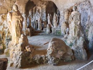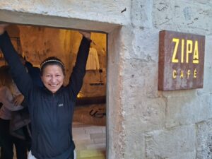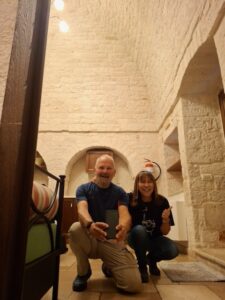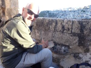 5. Oktober 2025: Abfahrt von Matera – wir haben wirklich alles wunderbar geplant aber dann kam uns ein örtliches event in die Quere – der „Duathlon von Matera 2025“! Die halbe Stadt ist gesperrt und nach zahlreichen Umwegen geht es nochmals quer und spektakulär durch die Sassis – diesmal mit unserem Auto!!! Gut, dass wir zeitlich alles kalkuliert haben denn um 11 Uhr haben wir noch einen Slot gebucht für ein „Kleinod“ etwas außerhalb von Matera: „Cripta del Peccato Originale“ – Krypta der Erbsünde! In dieser Höhlenkirche hat man Fresken aus dem 8/9 Jahrhundert gefunden, die den „Sündenfall“ von Adam und Eva darstellen. Ein kurzer 4×4 Drive und in einer kleinen Gruppe kann man in der Grotte die Fresken mit Erklärung und „Mönchsgebet“ bewundern!