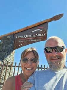 11. Oktober 2025: Lara ist im Einsatz aber sie hat uns auf das „Pistazienfest“ im Pistazienparadies Bronte aufmerksam gemacht (Sagra del Pistacchio di Bronte). Das ist eine Gelegenheit! Wir starten eine Etna-Umrundung, bei strahlendem Sonnenschein, wunderbarer Blick auf den etwas Schnee bedeckten Gipfel und es wird auch eine Reise in die Vergangenheit. Wir kommen durch die uns bekannten Etna-Dörfer, durch Linquaglossa, wo wir geheiratet haben, queren die Bahnübergänge der Circumetnea,