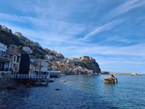 möchten uns ie Chiesa di Piedigrotta, direkt am Strand gelegen, ansehen. Eine kleine Kirche in Stein gehauen mit steinernen Kunstwerken – ein kleines Juwel mit großer Geschichte. Und Pizzo muss man einfach besuchen, denn das einzig wahre „Tartufo Nero“ kommt ebenfalls aus Pizzo :)! Wir sind positiv überrascht über die belebte, supernette Altstadt mit Piazza und Blick auf das Meer – und natürlich finden wir das perfekte Tartufo! Das Castello nehmen wir auch noch mit und dann geht es entlang der Ostküste am Tyrrhenischen Meer weiter.