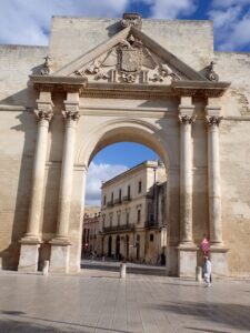 Zuvor ist aber noch Kultur angesagt, das „Habsburger – Tor für Karl V (Porta Napoli)“, die üppige barocke Altstadt, das römische Amphitheater….das Abendessen muss verdient werden:)! Und wir werden belohnt: mit Pferdefleisch in Form von Polpetti (Polpette di Cavallo), und in Form eines ganz zarten Sugos und der lokalen Pasta – Sagne ncannulate mit frischer Tomatensauce und Käse – ein MUSS in Lecce! Gefolgt vom Hauptgang – Involtini mit Schweinefleisch!!! – dieses Land ist mein „Untergang“!!!