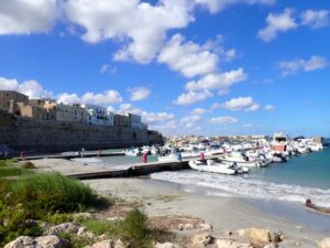 Roca Vecchia und die Grotta della Poesia – direkt an der Küste. Das Meer zeigt seine Urgewalt und wir werden von den starken Windböen und der „fliegenden“ Gischt fast umgehauen. Nächster Stopp: Otranto – die östlichste Stadt Italiens. Der Hafen mit Blick nach Albanien und das historische Zentrum sind beeindruckend. Die Sonne scheint, der Wind bläst und wir erkunden das Castello und die Basilika (Santa Annunziata) mit enormen