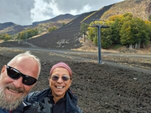 12. Oktober 2025: Heute nimmt uns Lara mit ihrer Reisegruppe „Explore“ auf ihre Etna-Trekking Tour mit. Eine bunte „ältere Truppe“: Kanadier, Australier aus Perth, Schotten, die eigentlich aus Großbritannien sind, Mailand… Es wird eine entspannte Tour auf Etna