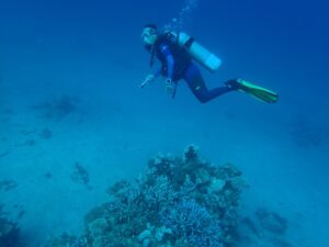 Das Silver Beach Hotel liegt unmittelbar neben al-Qusair, einer Stadt, die schon zu altägyptischer Zeit große Bedeutung hatte für den Handel zwischen dem Roten Meer und dem Nil. Das Hotel selbst ist genau nach unserem Geschmack: gerade mal 30 Zimmer, ein Hausriff, eine professionelle Tauchschule und vor allem bei Tauchern gefragt. Für Verena haben wir die „übliche“ kulinarische Abwechslung aus der Heimat mitgenommen – Goudakäse und Schwarzbrot und das Team – sowohl in der Tauchschule, als auch im Hotel ist großartig!